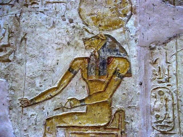 Według mitologii na wyspie tej zamieszkiwał Chnum, bóg katarakt o baraniej głowie, króry kontrolował wody Nilu ze swoich jaskiń pod wyspą. Był czczony jako jeden z trójki, w której skład wchodził on, jego żona Satis i jego córka Anuket. Istnieją dowody na to, że świątynia Chnum znajdowała się na wyspie już podczas panowania III dynastii. Także na południowym krańcu wyspy, znajdują się ruiny późniejszej świątyni Chnuma, która została całkowicie przebudowana w okresie 30. dynastii.foto: David Stanley